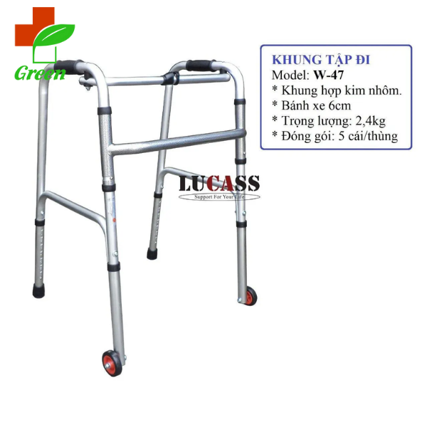 Yếu tố khác | - Xe có trọng lượng chỉ 780g nên rất nhẹ. Dòng này còn có thể gấp gọn đảm bảo tiết kiệm đáng kể diện tích cất trữ khi không dùng tới. - Lucass W-47 linh hoạt điều chỉnh cao thấp tạo điều kiện để bệnh nhân tập đi hiệu quả. - Bằng cách này sản phẩm hợp với mọi đối tượng giúp bạn thêm trải nghiệm hài lòng khi dùng thực tế. |